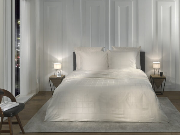 Heckett and Lane Bettwäsche Diamante 1 Bettwäsche 260x220cm mit 2 Kopfkissen 60x70cm 100% Baumwolle Mako-Satin Off-White