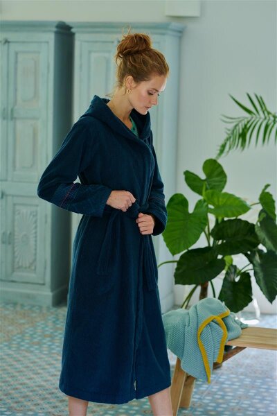 Pip Studio 100% Cotton, terry, 450 GSM Bademantel Soft Zellige Bathrobe Dark Blue Xl XL 1 Bademantel Dunkelblau